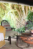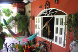 La hamaca, uno de los símbolos del descanso al aire libre, tiene también su lugar en la pequeña terraza con vista hacia la piscina, y le invita a descansar, leer o simplemente ver televisión.